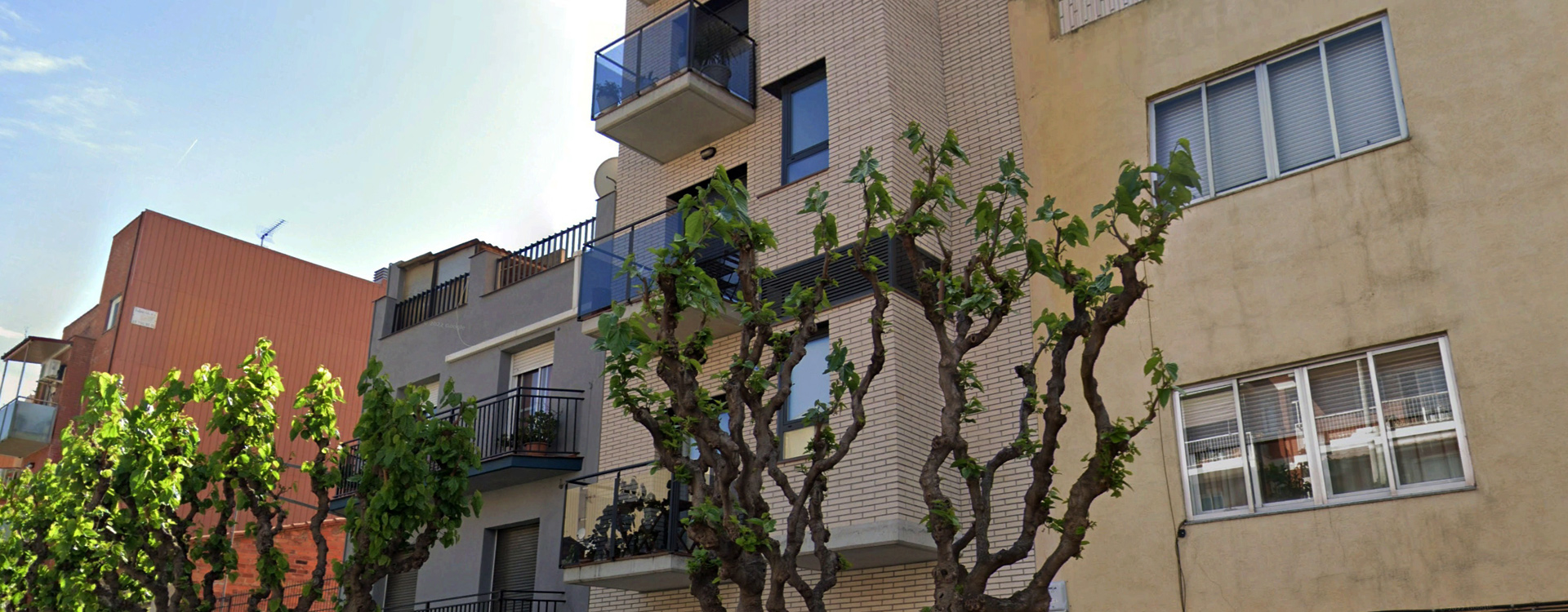 Edifici plurifamiliar d'habitatges entre mitgeres.